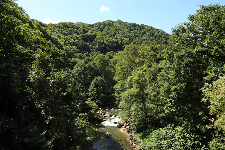 鳴瀬川の上流です。標高は400mくらいでしょうか。まだまだ里山はみどりがいっぱいです。