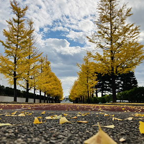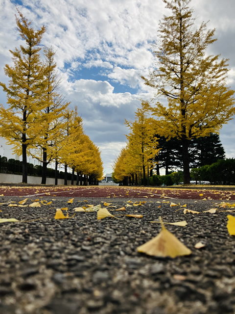 ここは陸上競技場横のサブトラックです。我が家は息子が陸上競技をしていました。今では大学生となり家を離れました。大会や練習、よく通った競技場ですので思い出にふけりながら、陸上トラックとイチョウの綺麗な黄色の葉の組み合わせが面白いなと思い撮影しました。