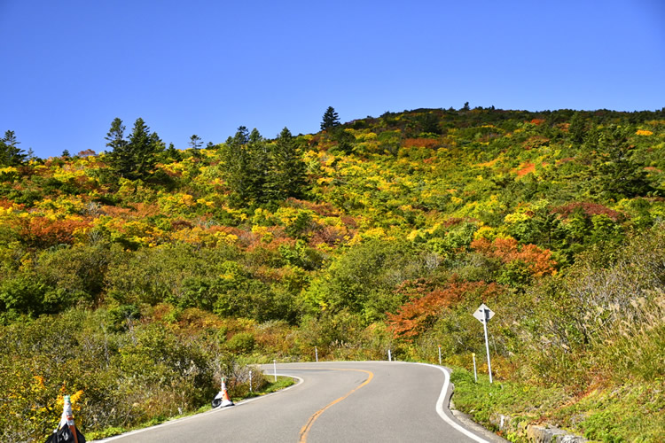 蔵王の紅葉、晴天に恵まれて、青空と紅葉は、綺麗でした。