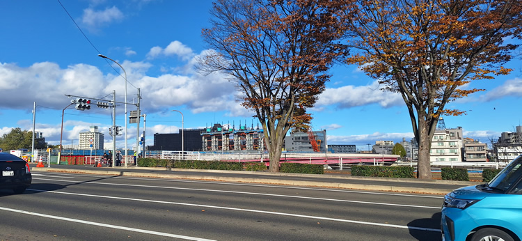青空の快晴に恵まれぶらり長町。宮沢橋周辺工事中。