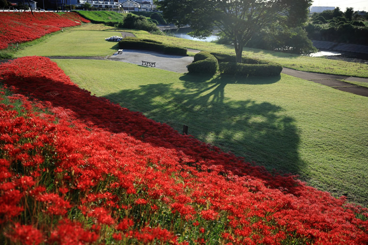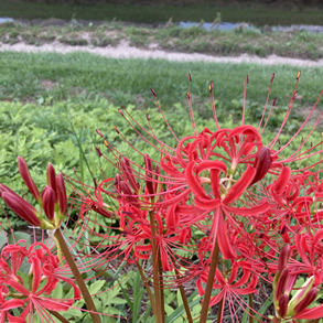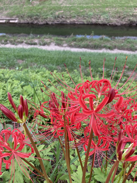 彼岸花が秋を待ち侘びたチャリダーに涼しい風を運んでくれました。
