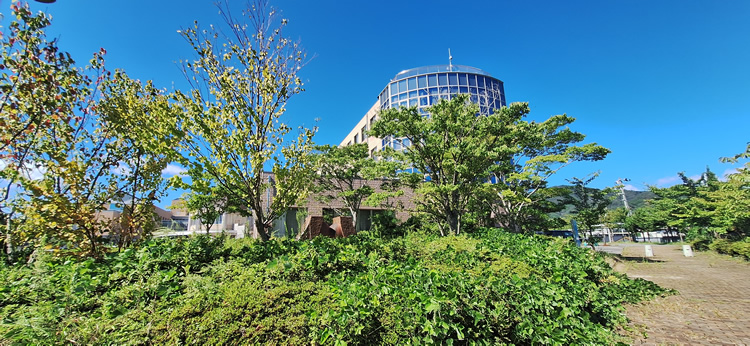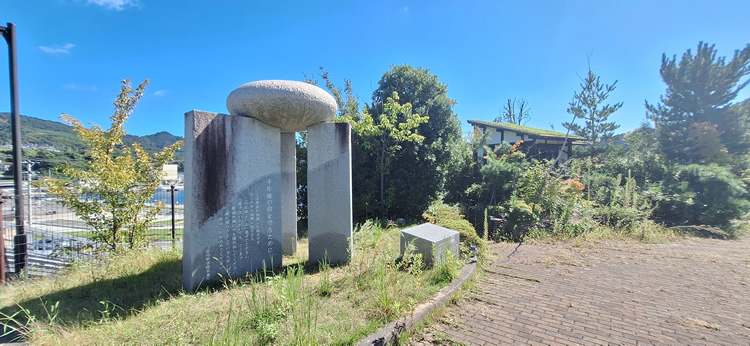 千年後の命を守るために!女川病院隣接の石碑もみどりで、囲まれてます。