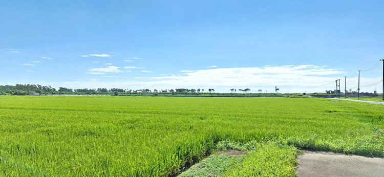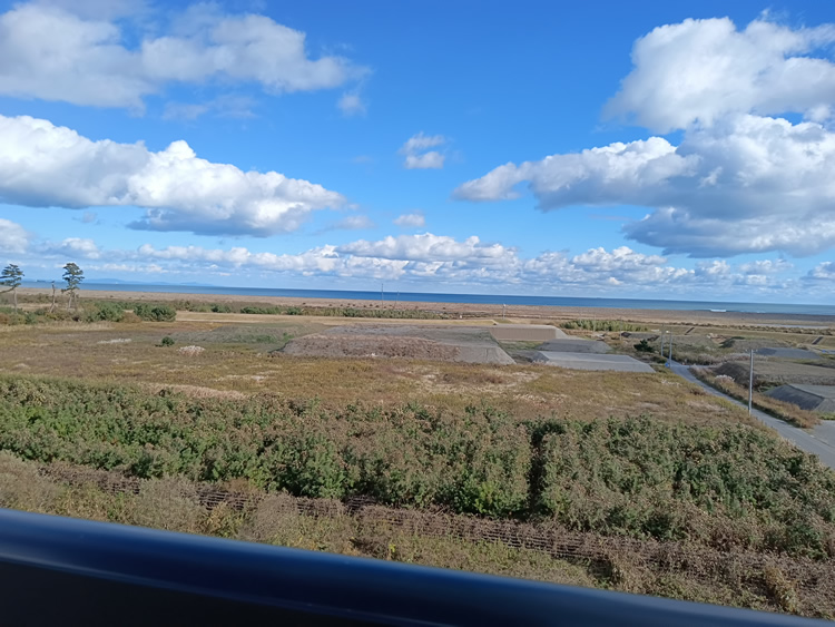 青空と田んぼ。そして、海岸線には3.11復興復旧の防風林。