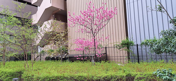 泉パークタウンの中の小さな公園です。緑に囲まれ、今にも子供たちの笑い声が聞こえてきそうな風景でした。