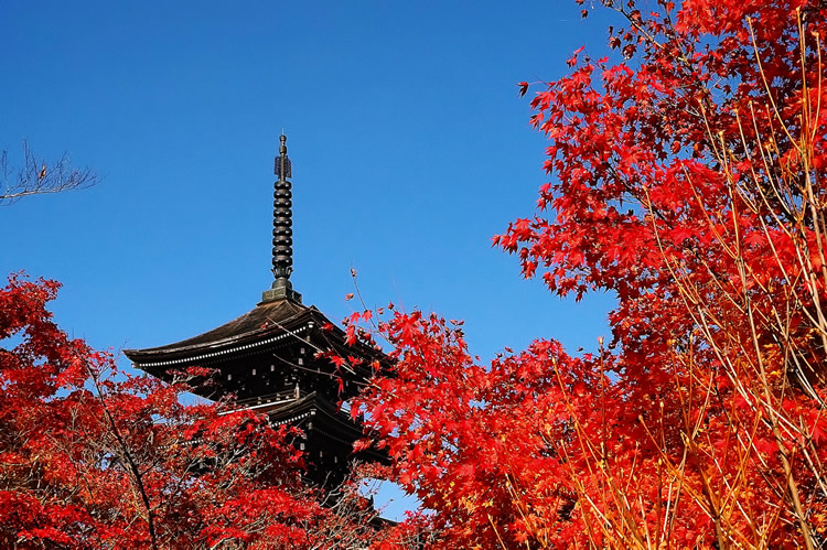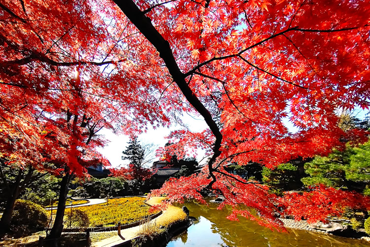 紅葉前線通過中。真っ赤なもみじとみどりの共演です。