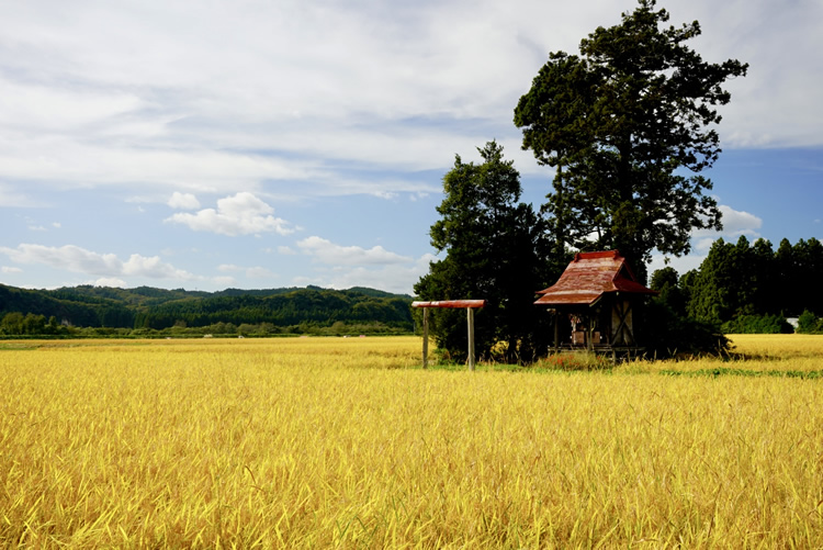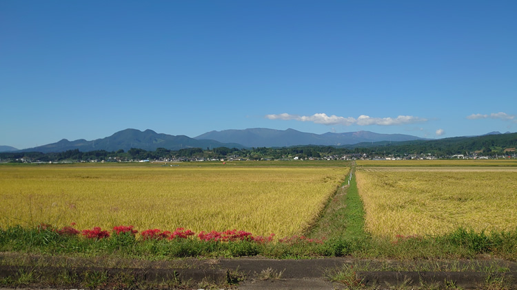 みやぎ蔵王三十六景「円田水田」は一面黄金色。毎年秋は短いねと思っていても、実りの秋はしっかりやって来ます。