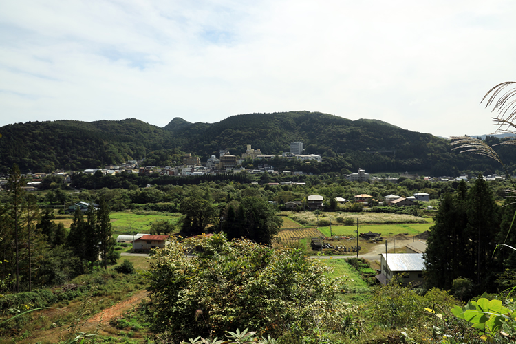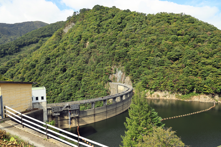 渇水した二ツ石ダムと、遠くに薬莱山がポッコリと頭を出しています。9月後半は、まだ濃いみどりが沢山ありました。
