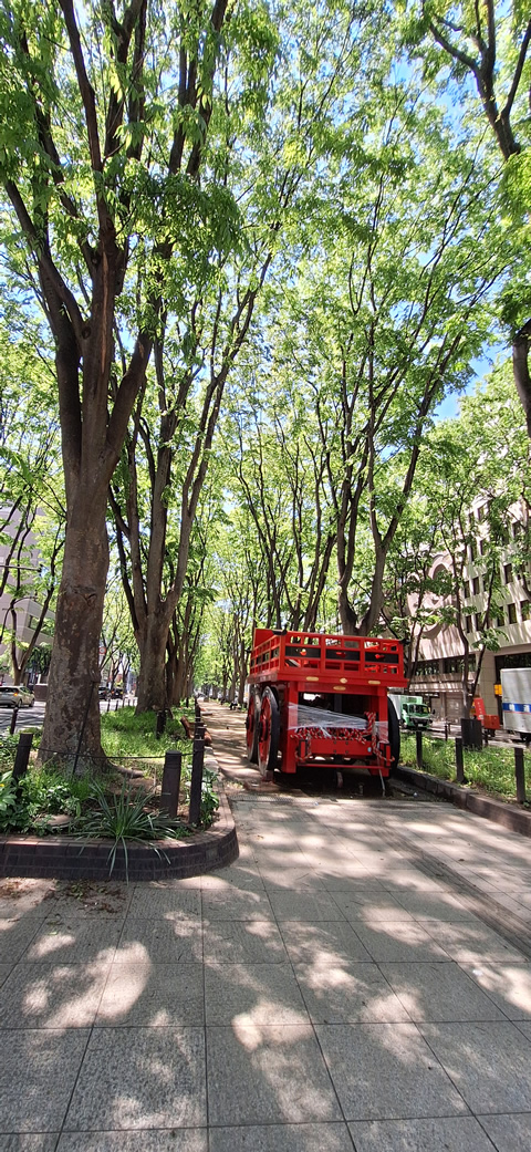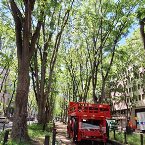 お祭りの準備なのかな?杜の都にみどりアーチの舗道。